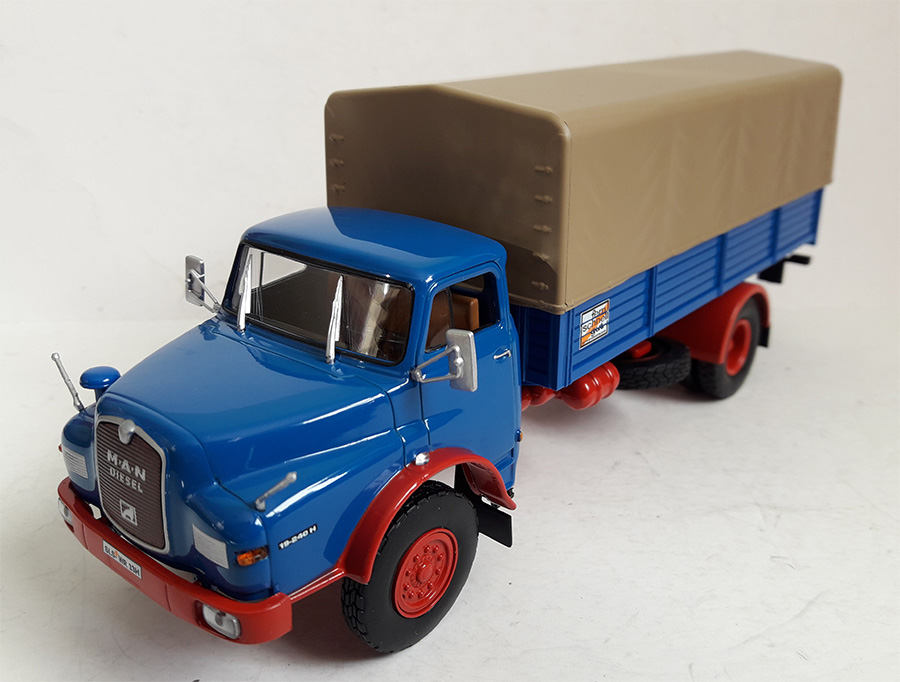 MINIATURAS DE LA COLECCIÓN "CAMIONES DE ANTAÑO" de ALTAYA a escala 1/43 Recorrieron las carreteras españolas y europeas durante los años 50, 60 y 70. La primera de sus 50 entregas fue en agosto de 2010. Camión alemán Man 13 168-H de 1975 en metal y plástico.