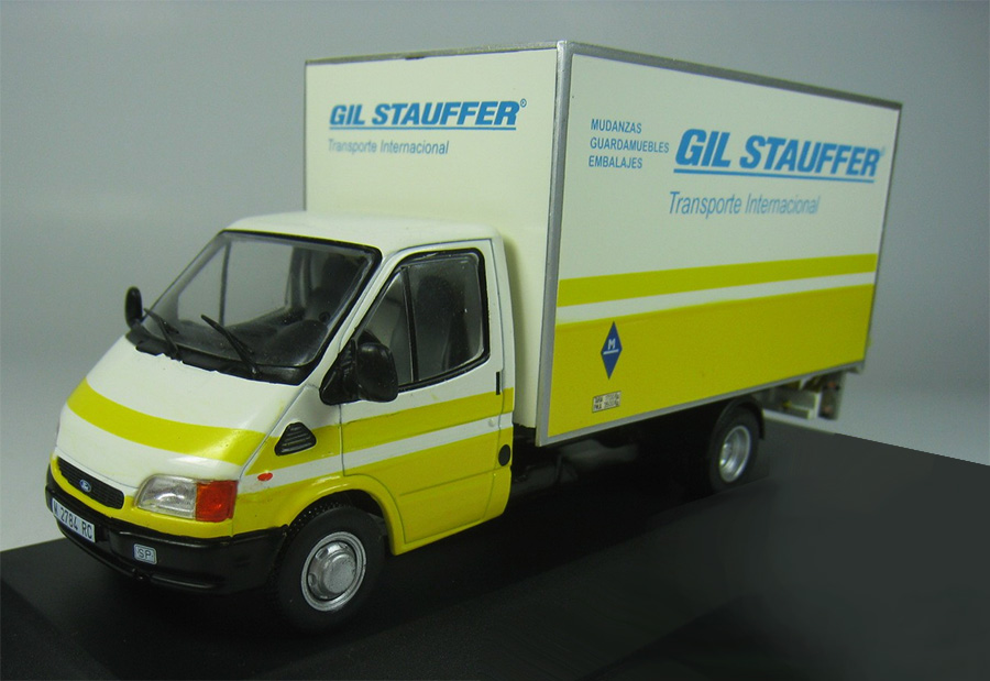 CAMIONES LIGEROS, FURGONES Y CAMIONETAS DE REPARTO Ford Transit de 1998 en metal y plástico. Colección "Vehículos de Reparto y Servicio" de Salvat. 2020.