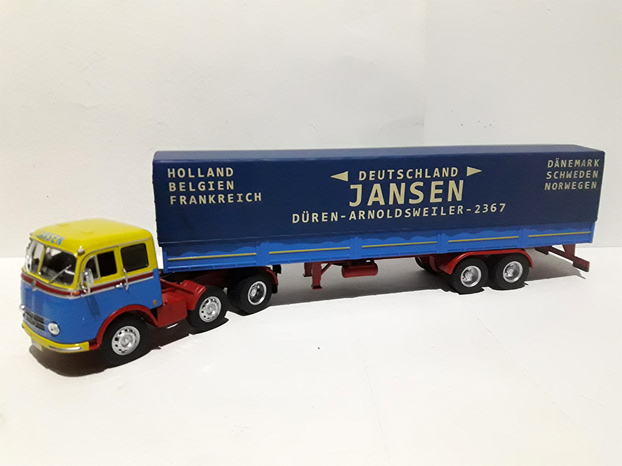 COLECCIÓN "CAMIONES ARTICULADOS" de PLANETA DEAGOSTINI ALTAYA a escala 1/43 Algunas de aquellas 100 entregas de los "Gigantes de la Carretera" (años 50, 60 y 70), que salieron a la venta entre 2015 y 2019. Camión alemán Mercedes-Benz LPS 333 "DEUTSCHLAND JANSEN" (1958-1961). Miniatura en metal y plástico inyectado.