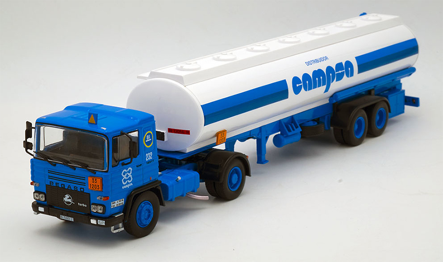 COLECCIÓN "CAMIONES PEGASO" de SALVAT a escala 1/43 Algunas de aquellas 60 entregas de la legendaria marca española de camiones, que empezaron a salir a la venta en 2018. Pegaso trailer 1231 T "Bocanegra" (1982) de Campsa . Miniatura en metal y plástico inyectado.