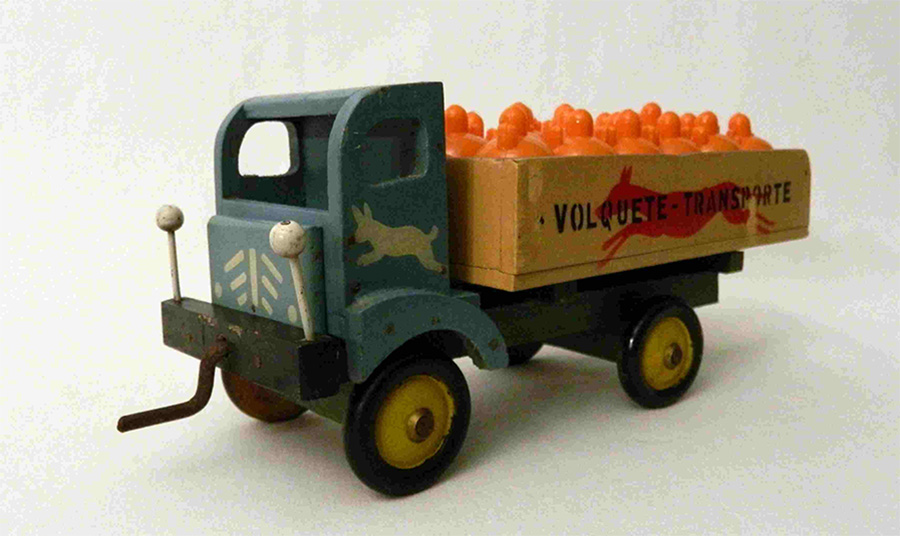 ALGUNOS DE LOS HISTÓRICOS Camión volquete de la fábrica de juguetes de Asensio Linares Vallalta en Ibi (Alicante), de 1950 en madera. Estuvo esta fábrica abierta entre 1934 y 1962.