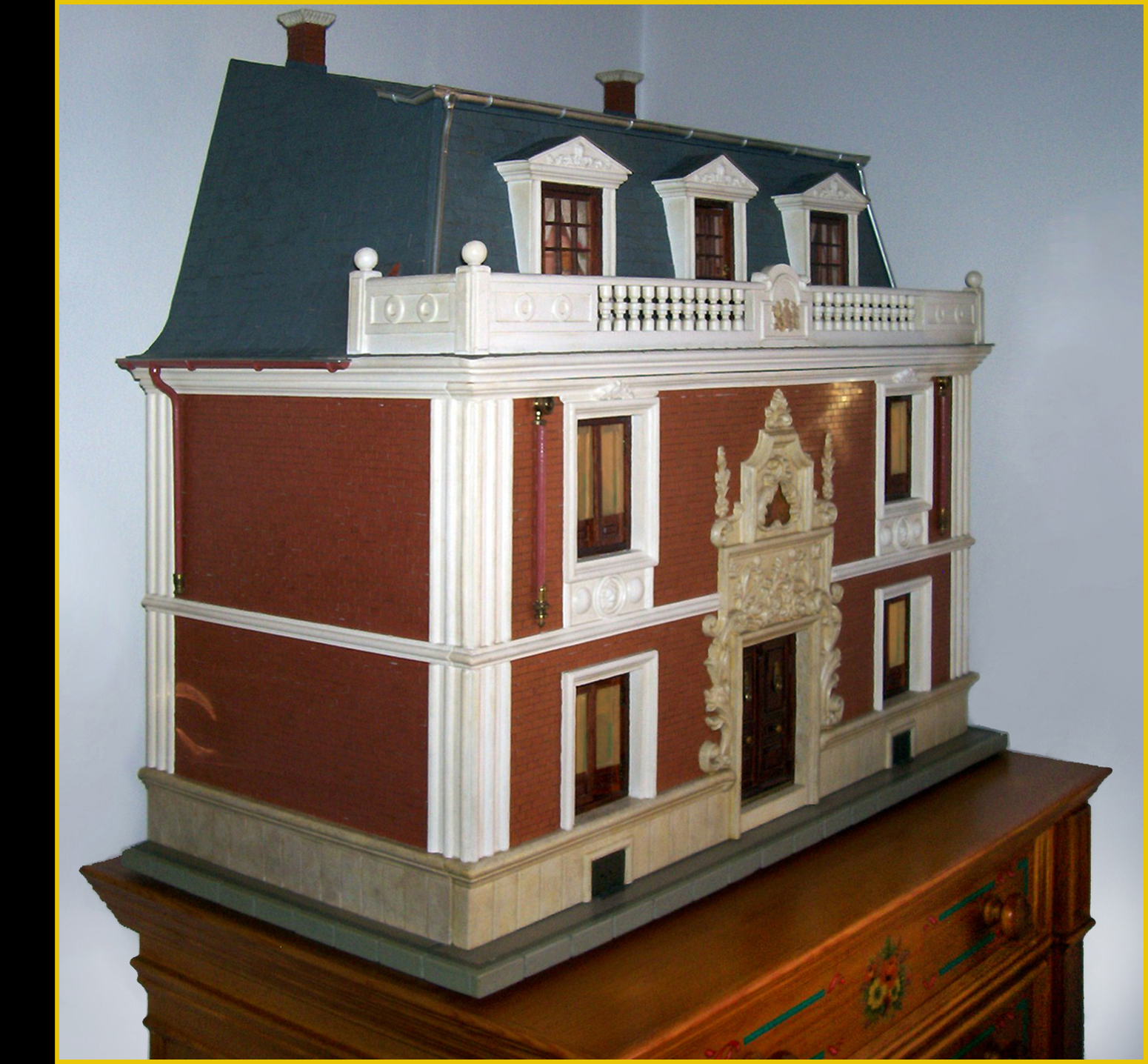 La mayoría de los muebles son totalmente artesanos y algunos empleando juguetitos de “plastiquillo malo” y de colorines, convenientemente modificados, oscurecidos y barnizados. Sí utilice los de una colección que hubo, en plástico ya barnizado, de medidas idóneas y muy barata. Los que vendían y venden en tiendas especializadas son de una escala superior a la que necesitaba y con precios no precisamente muy asequibles.