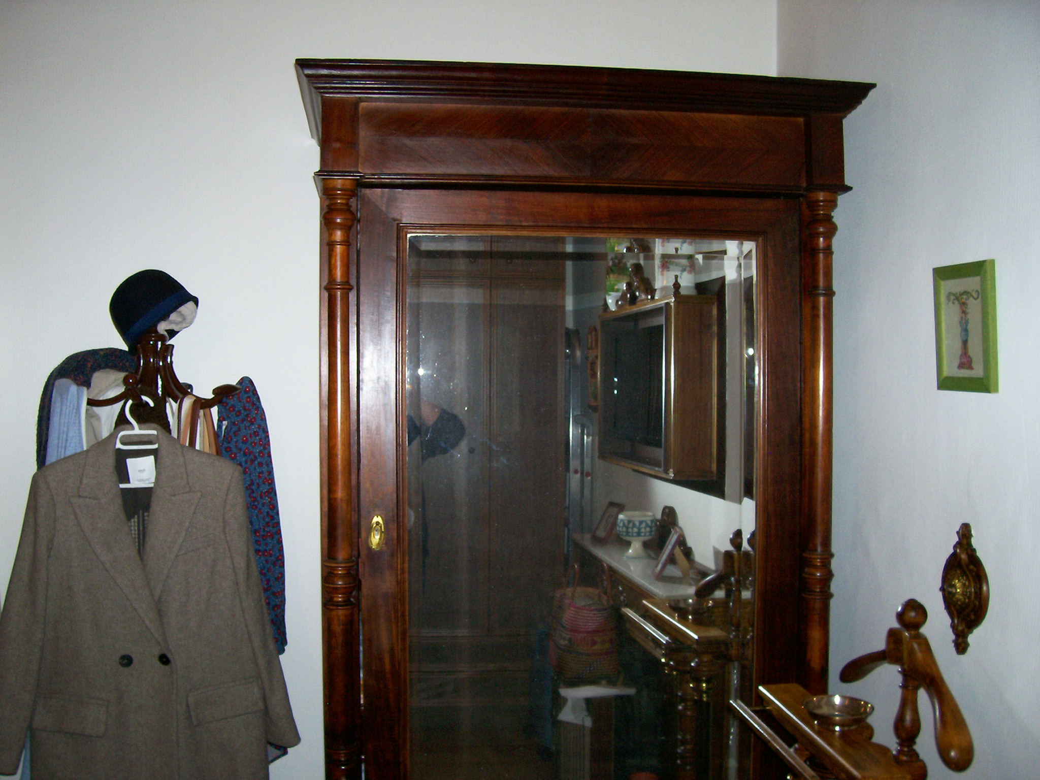 DORMITORIO. Armario, perchero thonet y galán de noche.