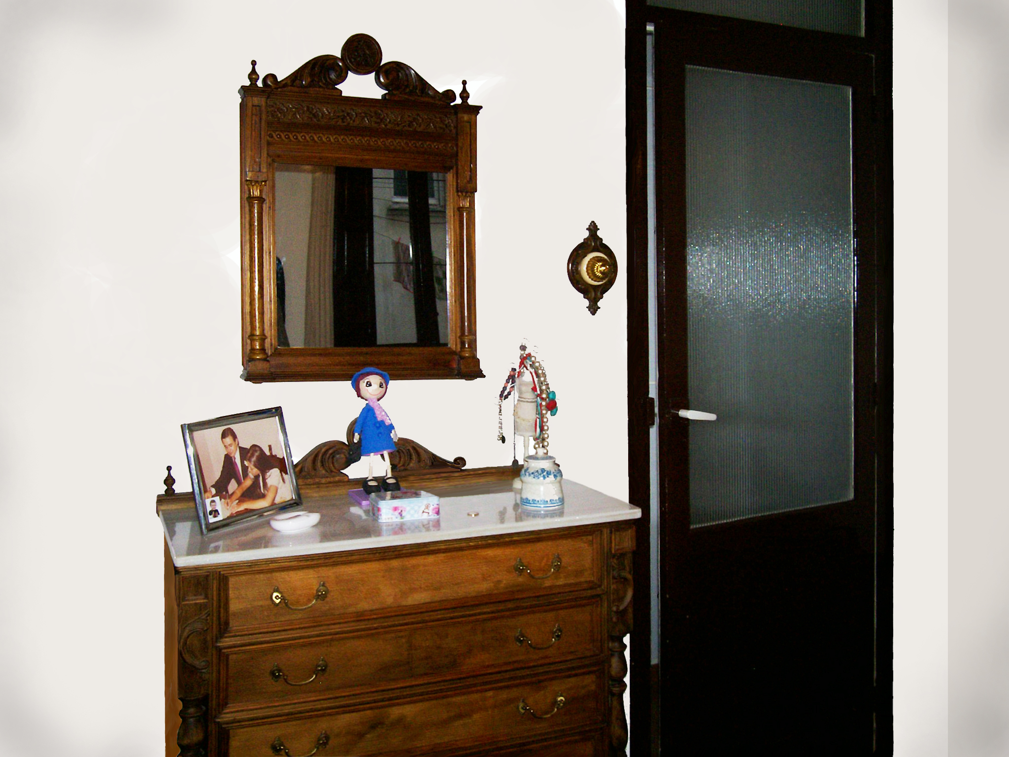 DORMITORIO. Cómoda, espejo e interruptor.