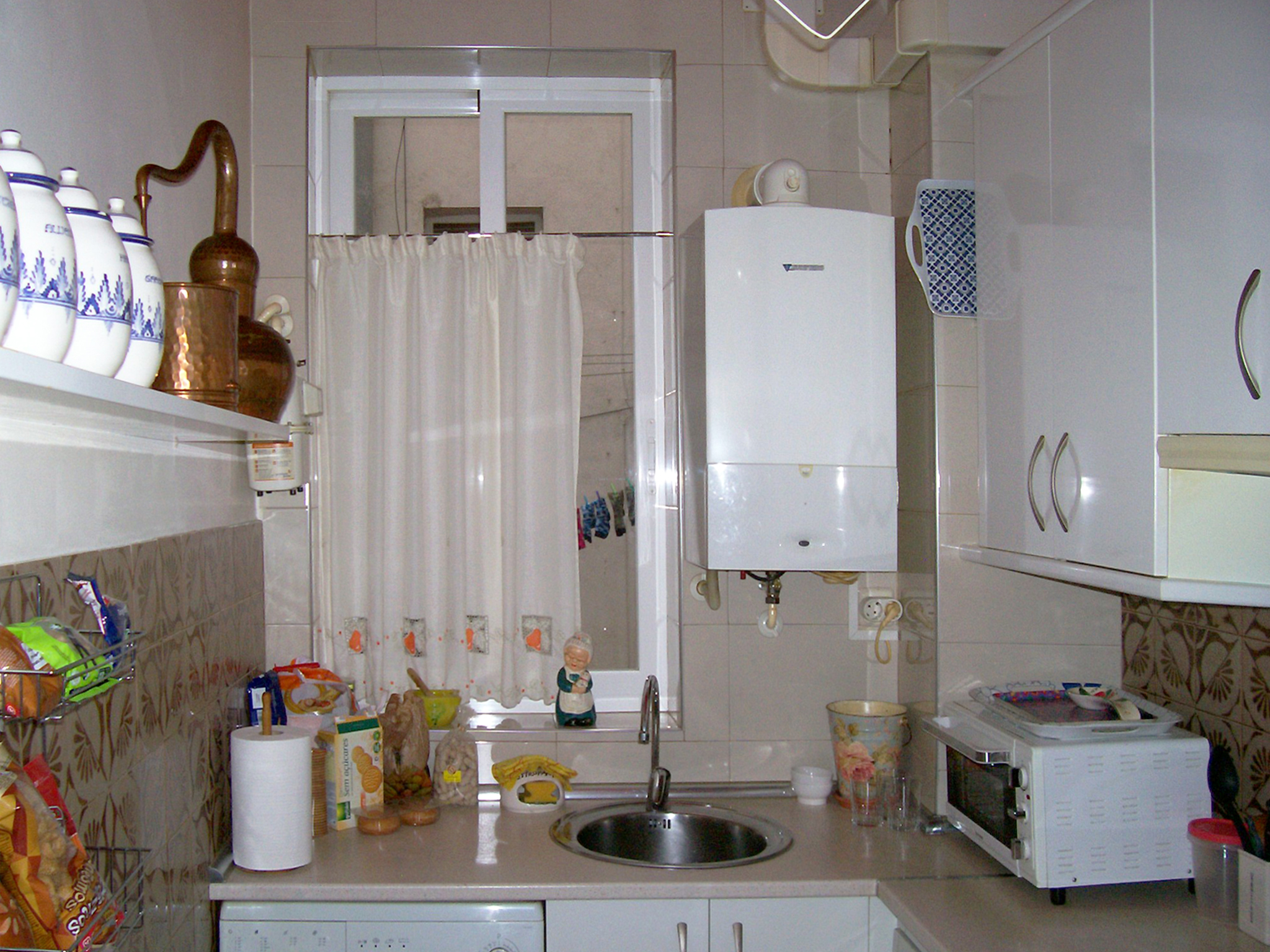 COCINA. Fregadero y caldera de agua caliente y calefacción.